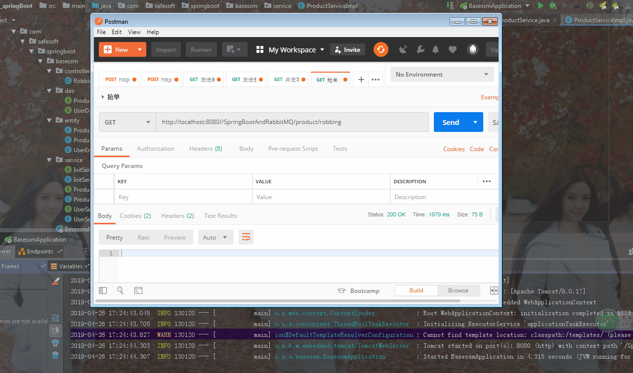 我们使用线程池创建1000个线程,模拟一千个人同时开抢。