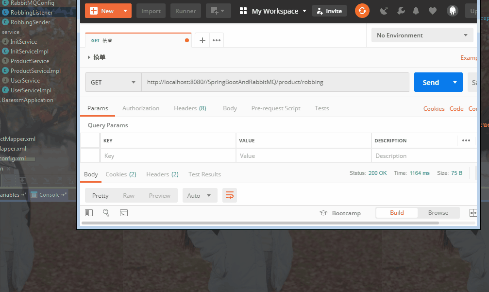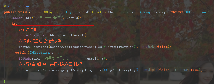 解决办法就是,把用户的抢单请求发送到RabbitMQ消息中间件中。因为RabbitMQ是一个消息队列,队列会按照先进先出的特点进行操作。RabbitMQ服务器一般部署在另外一个电脑上,所以就把这个并发压力转移到了另外电脑的RabbitMQ服务器上,而不是我们的抢单应用程序。