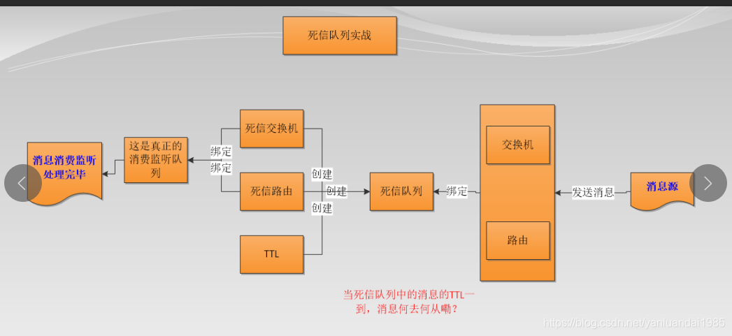 核心功能总结:投递到死信交换机的消息,将会有时间限制。时间到了以后,如果仍然没有被消费。那么这个消息将会被转发到创建它的死信交换机中。死信交换机如果没有绑定任何真实队列,那么这个消息就丢失了。否则,将这个消息投递到真实队列中。