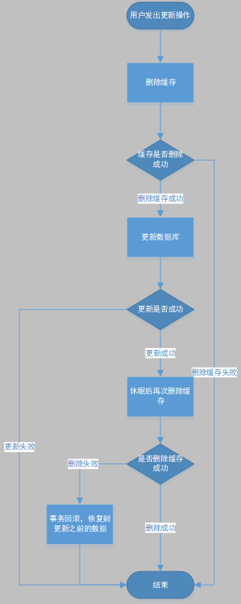 更新数据库成功后,休眠后再次删除缓存,目的是删除其它线程存入的老版本的数据。可把缓存的旧数删除。