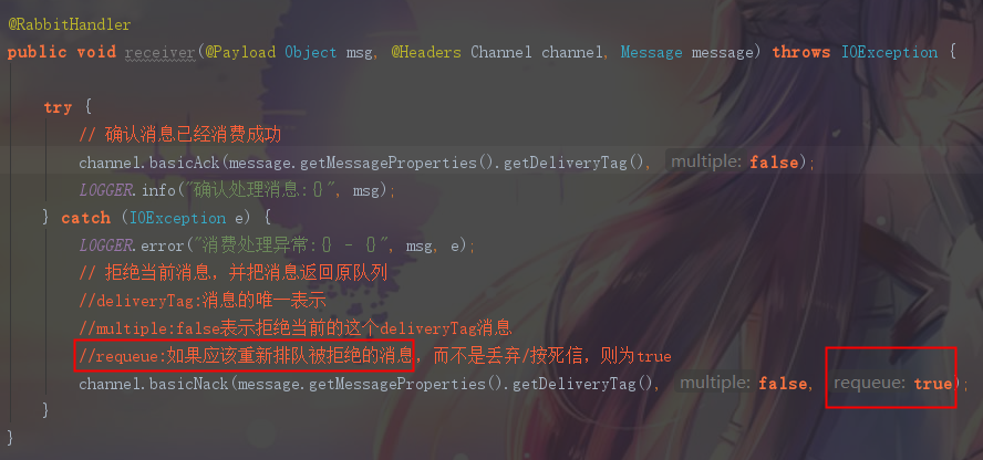 消费端刚接收到消息,然后系统就不可用了。如果是自动ack,那么MQ就认为消费端已经成功消费这条消息,但是实际上还没有来得及消费。所以必须关闭 RabbitMQ 的自动 ack。如果消费消息失败,那么会把消息重新退回MQ中,由MQ将此消息分配给其它消费者。