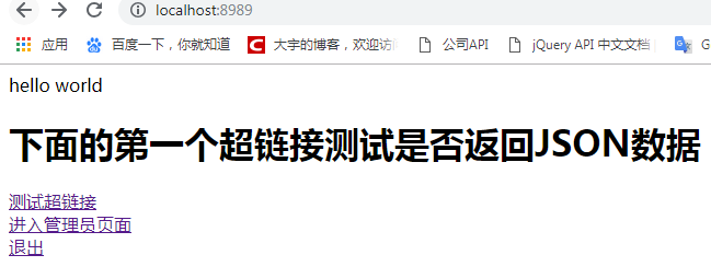 点击第一个测试超链接,发送向后台请求全部用户JSON数据的请求。因为没有登录,所以被强制重定向到登录页面。