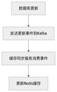 数据库更新后发送事件到 Kafka,缓存同步服务消费事件更新 Redis(容忍秒级延迟)。