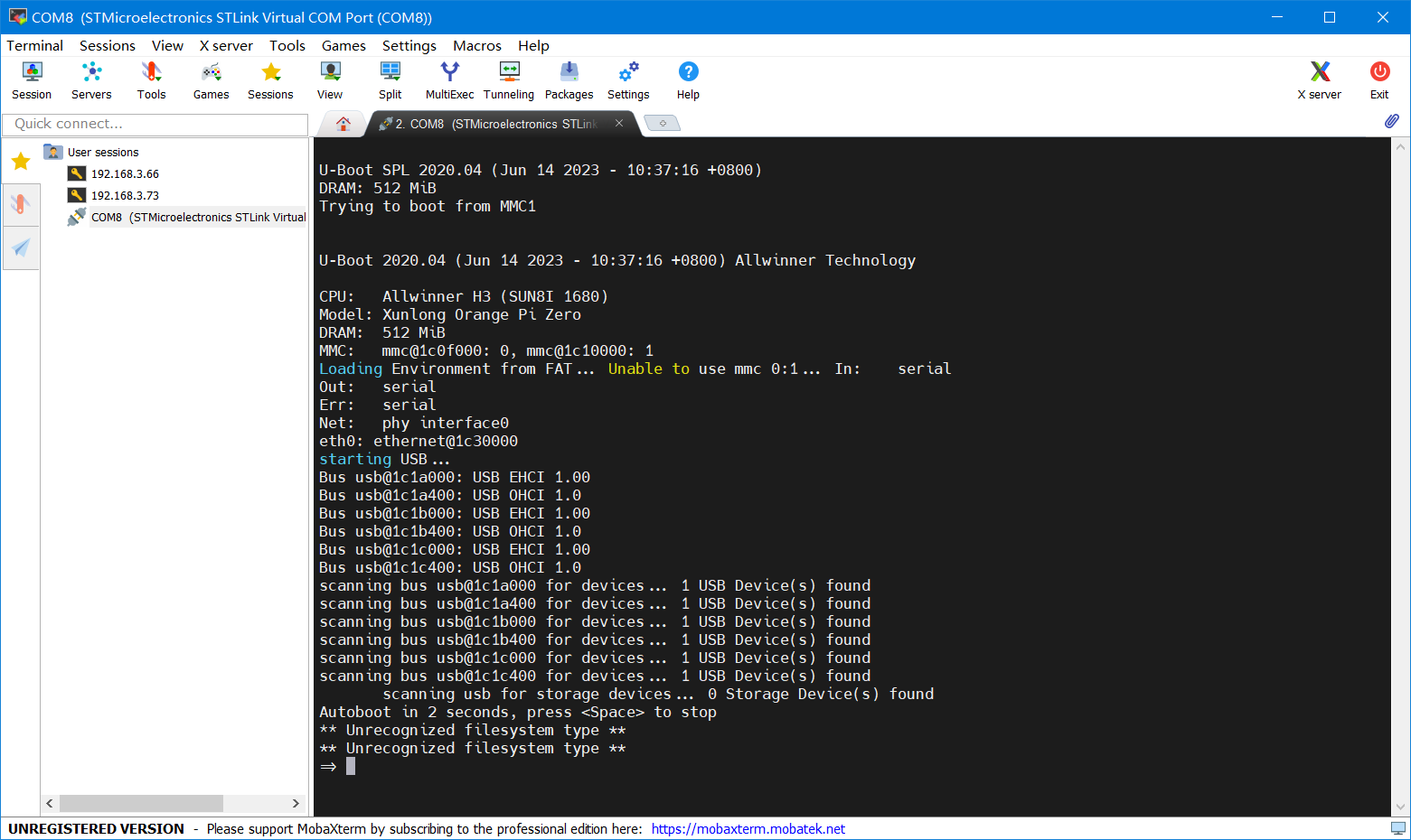 将TF卡插到板子上,重新上电,可以发现u-boot正常启动了,只是因为读内核设备树时识别不了文件系统,这个是正常的,因为此时还没有对卡进行分区和创建文件系统