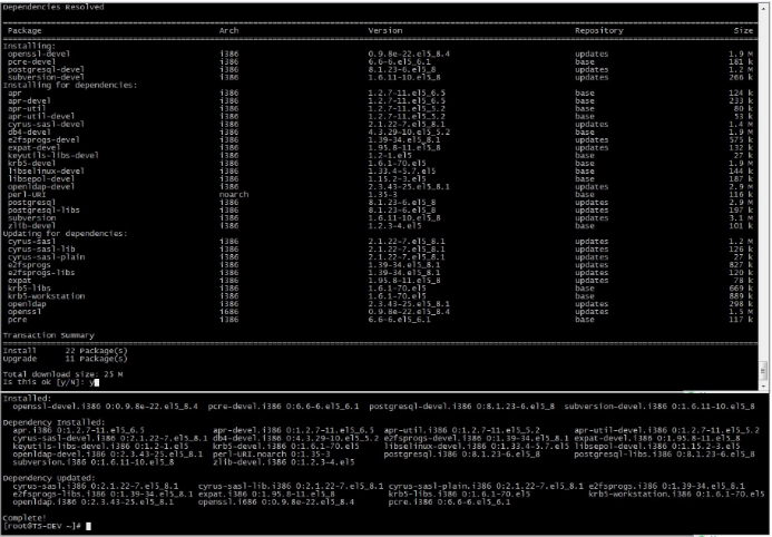 # yum install openssl-devel pcre-devel ncpfs-devel postgresql-devel libssh-devel subversion-devel libncurses-devel