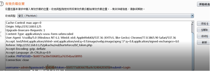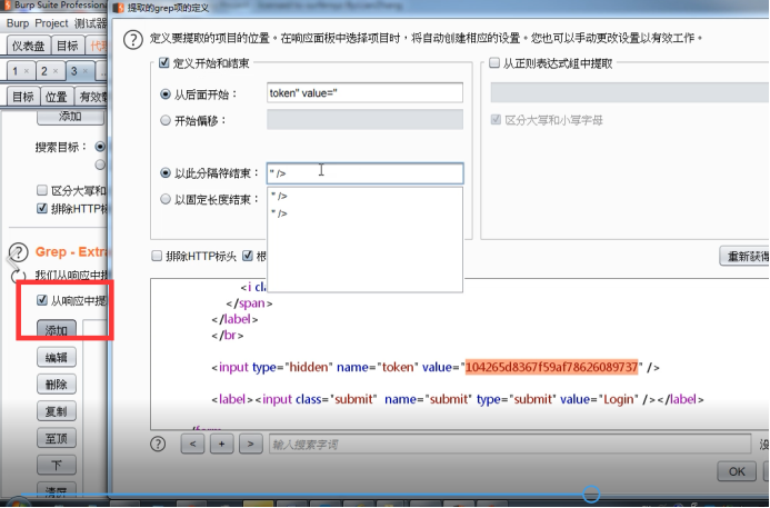原理:虽然每次访问token值不一样,但是我们可以从每次的相应包中提取token值用来再次攻击,从而在暴力破解中绕过token值防御