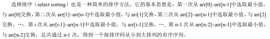在待排序的数据内,按照一定的规则找到最大或者最小的数据,然后交换到指定的位置,在不断缩小待排序数据的范围直到结束为止。