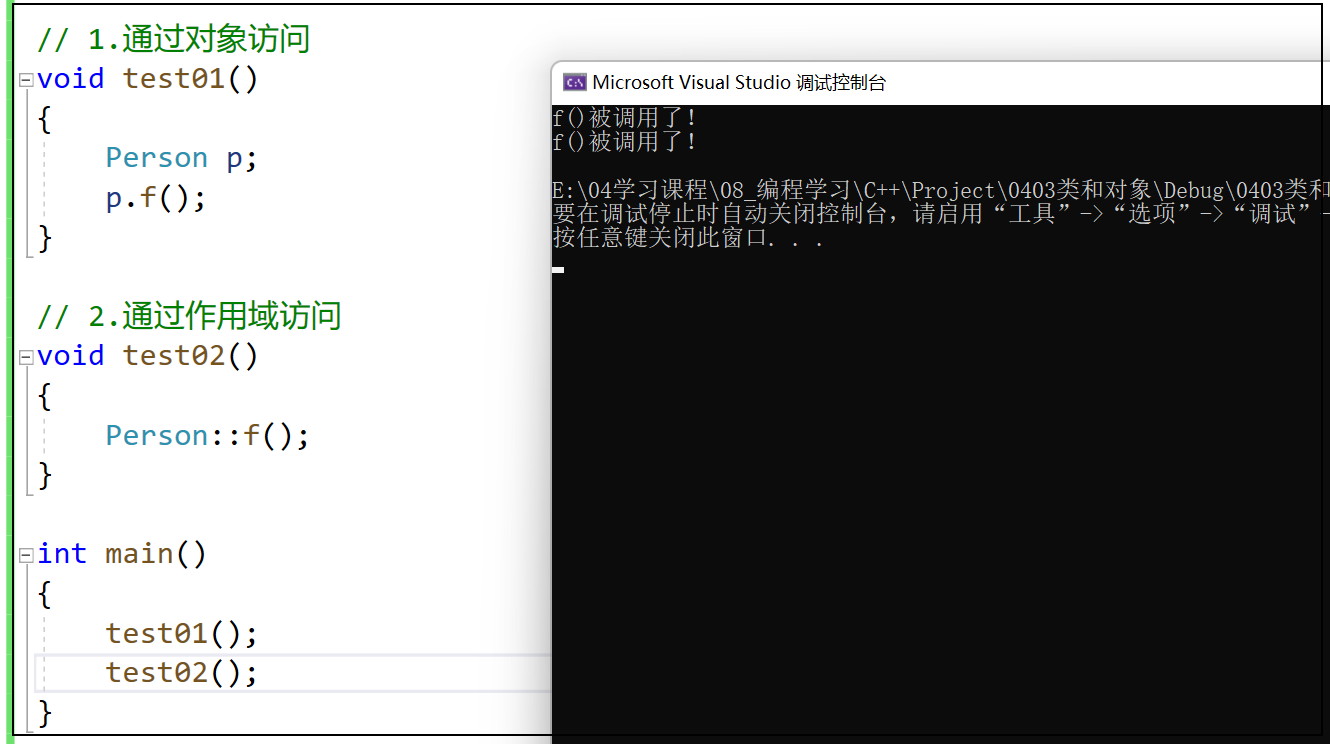 using namespace std;语句,当然也可以定义命名空间; - :: 表示作用域;