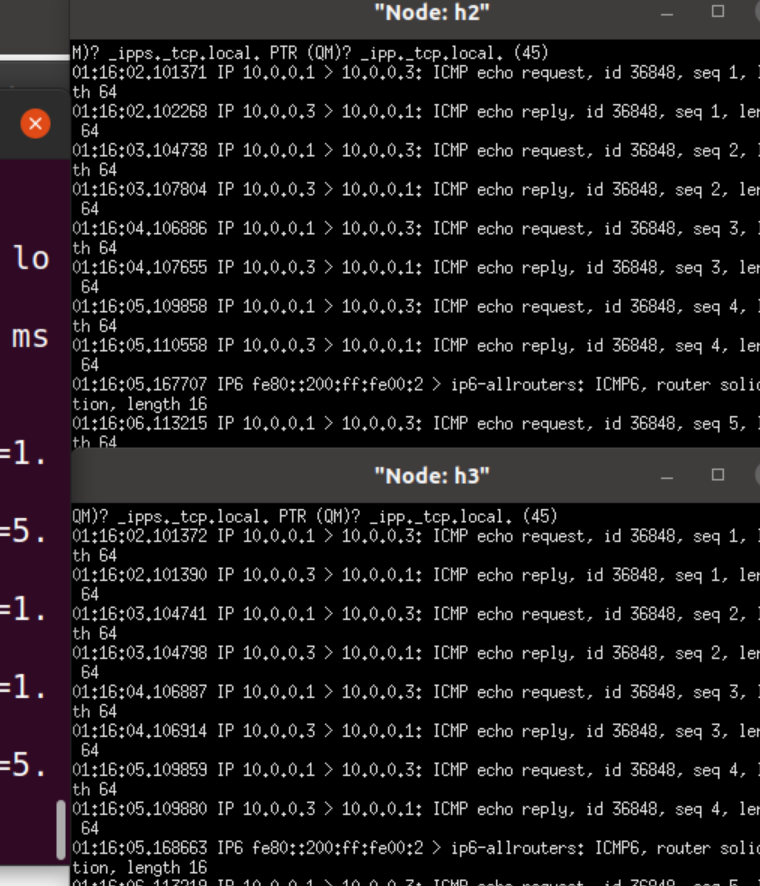 阅读Ryu文档的The First Application一节,运行并使用 tcpdump 验证L2Switch,分析和POX的Hub模块有何不同。