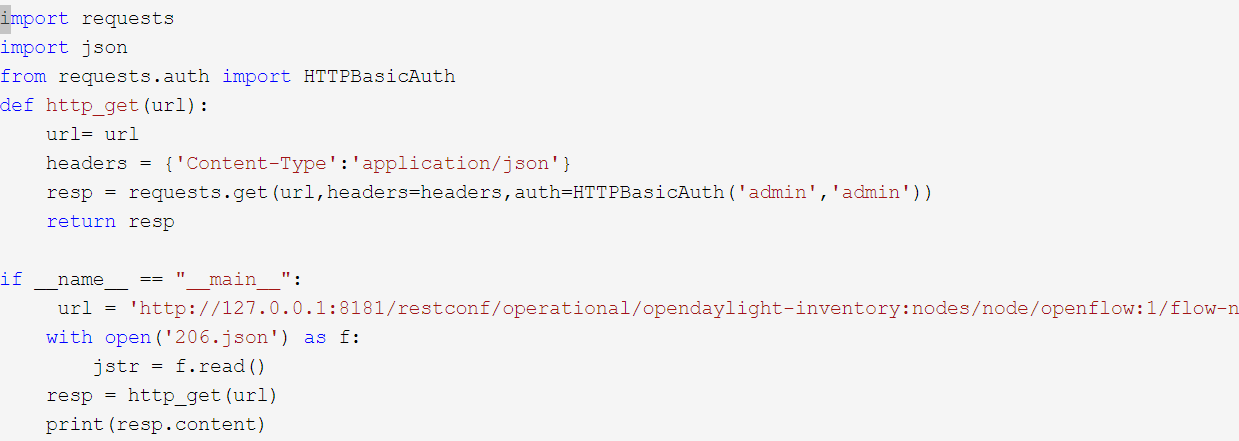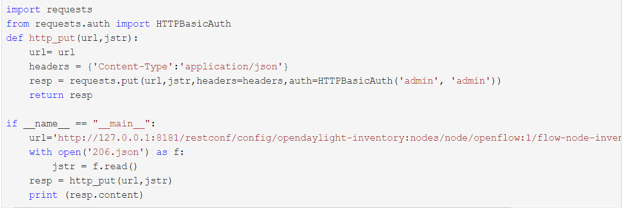 2.编写Python程序,调用OpenDaylight的北向接口下发指令删除s1上的流表数据。