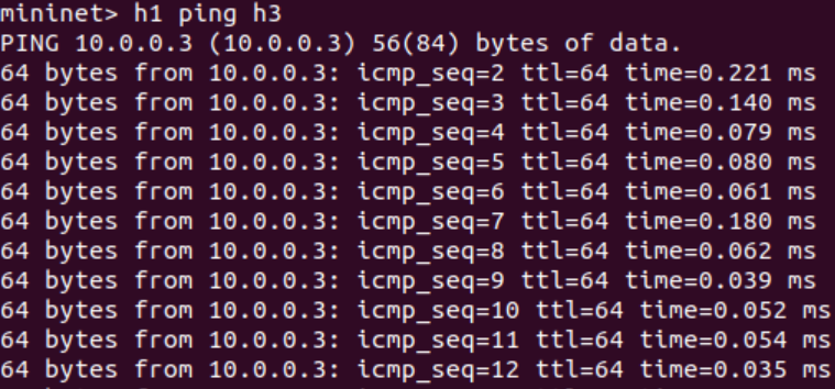 搭建拓扑:sudo mn --topo=single,3 --mac --controller=remote,ip=127.0.0.1,port=6633 --switch ovsk,protocols=OpenFlow10