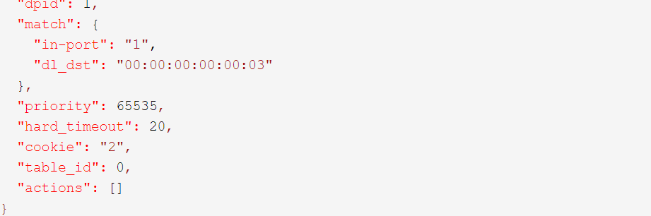 3.编写Python程序,调用OpenDaylight的北向接口下发硬超时流表,实现拓扑内主机h1和h3网络中断20s。