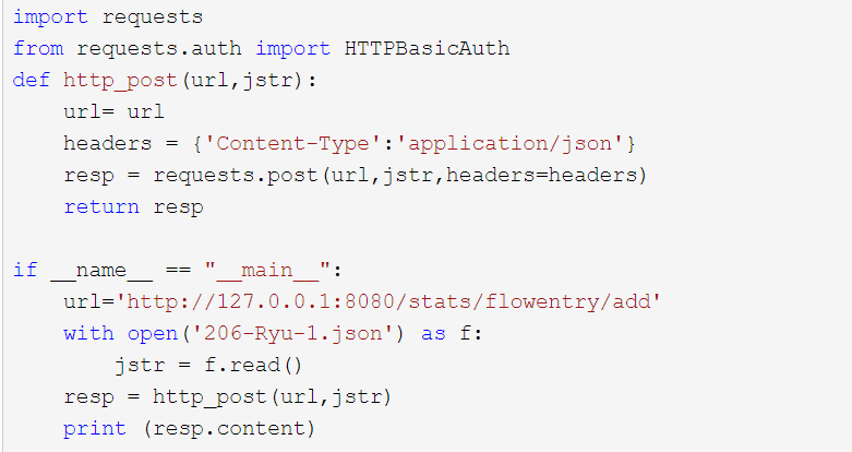 1.编写Python程序,调用Ryu的北向接口,实现上述OpenDaylight实验拓扑上相同的硬超时流表下发。