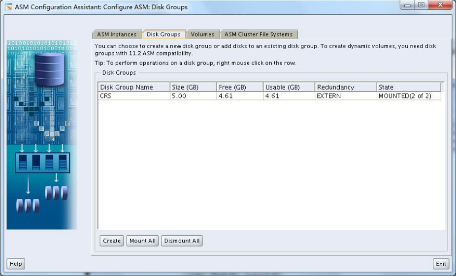 这里可以看到CRS盘,但看不到其他盘,点击create按钮: