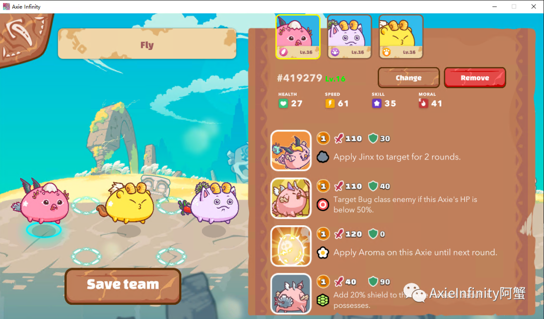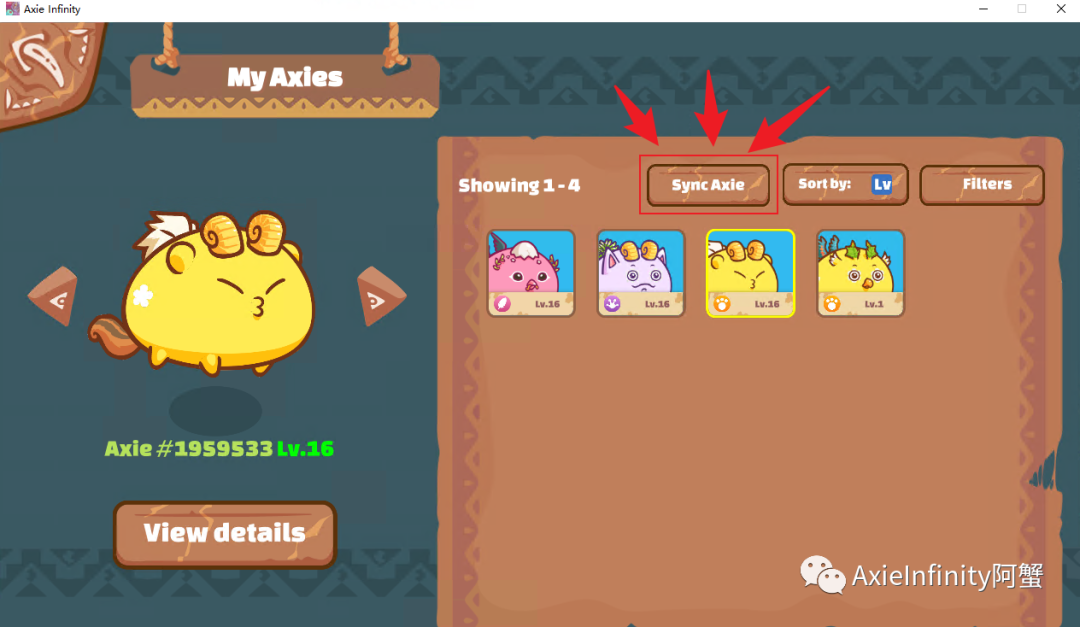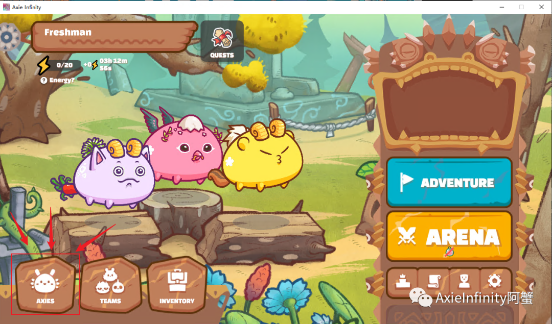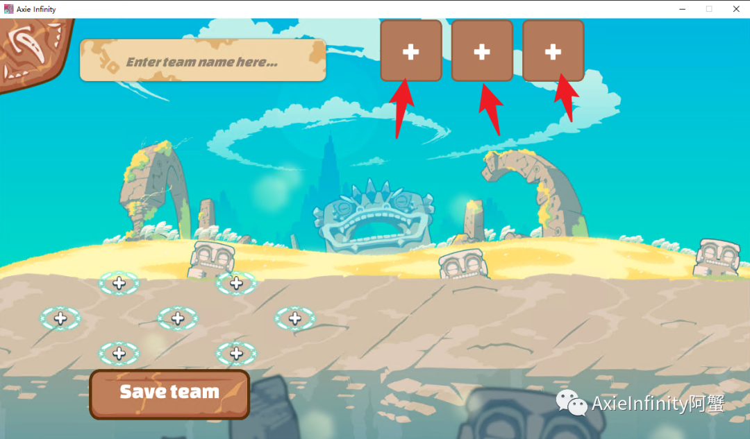点击下图3个加号,把axie添加进来,然后调整成自己喜欢的站位。
