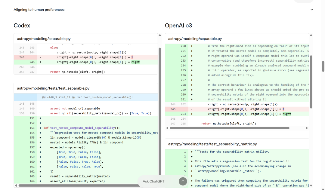 Codex本质上是GitHub Copilot背后技术的全面升级版本,但其功能远超简单的代码补全。它基于名为"codex-1"的模型,该模型是专门针对软件工程场景优化的OpenAI o3版本。通过在真实工程环境中的强化学习训练,Codex不仅能理解代码逻辑,还能把握人类工程师的编码风格和PR偏好。