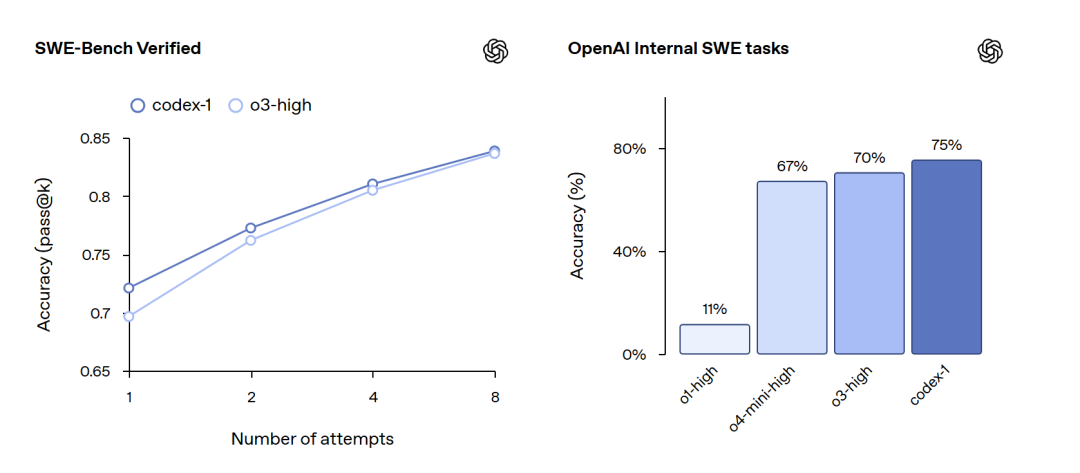 在SWE-Bench测试中,Codex比原版o3模型的表现高出21.4%,这一数据足以说明其在编程理解和生成方面的巨大飞跃。