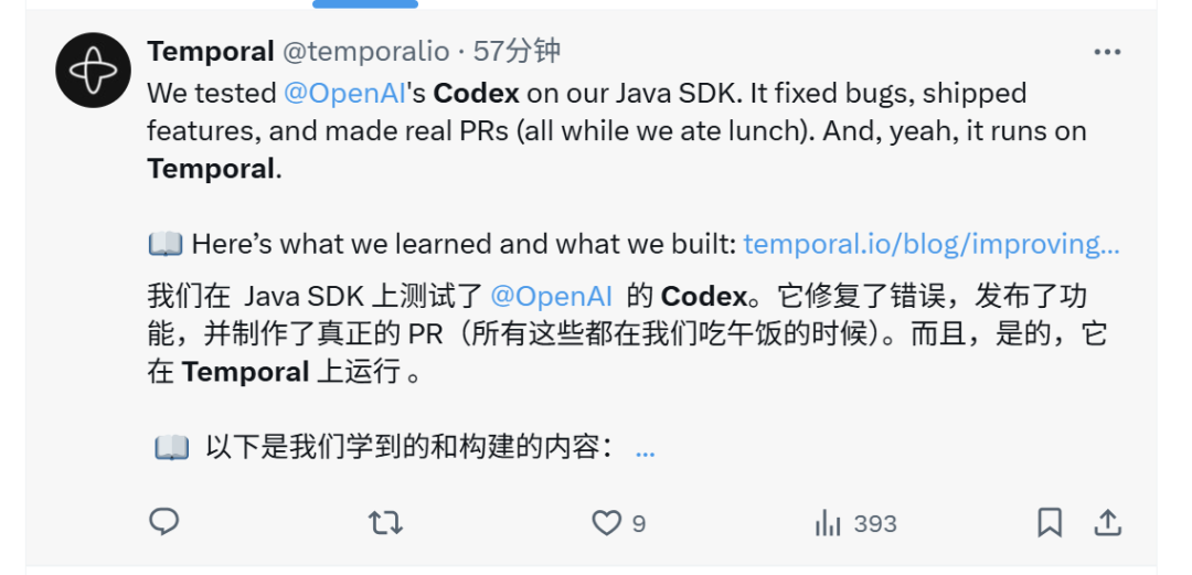 一位Temporal的工程师表示:"Codex不仅帮助我编写代码,还能帮我理解不熟悉的代码库结构,这在大型项目中简直是救命稻草。它能在数分钟内完成我可能需要几小时甚至数天才能完成的任务。"