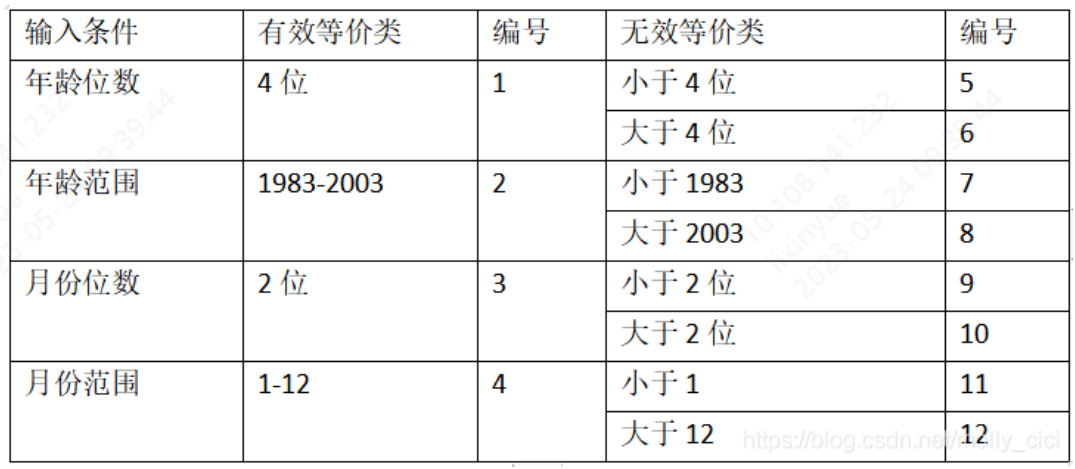 无效等价类和有效等价类相反,无效等价类是指对于软件规格说明而言,没有意义的、不合理的输入数据集合。利用无效等价类,可以找出程序异常说明情况,检查程序的功能和性能的实现是否有不符合规格说明要求的地方。以下是无效等价类数据集的一些例子。
