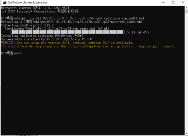pip install PyQt5-5.15.0-5.15.0-cp35.cp36.cp37.cp38-none-win_amd64.whl #后面写自己需要安装的whl文件