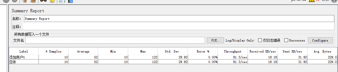 1.添加用户 查询用户 登录 三个接口调通后线程组设置为10个 间隔时间(Ramp-Up period)与循环次数去掉 勾选调度器 设置持续时间60s 设置响应断言 察看结果树与Summary Report移动到http请求之外 一起监控 开始执行 具体如下