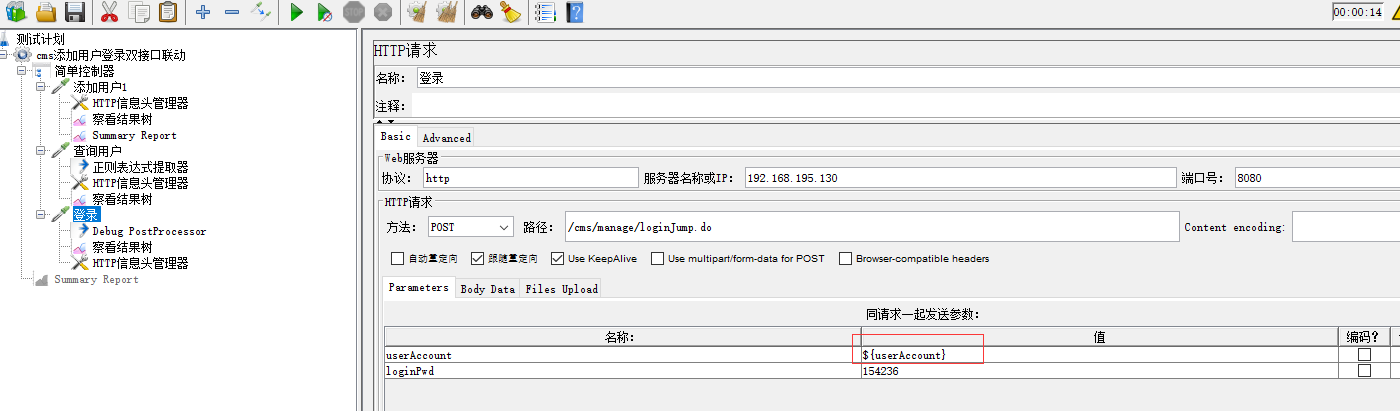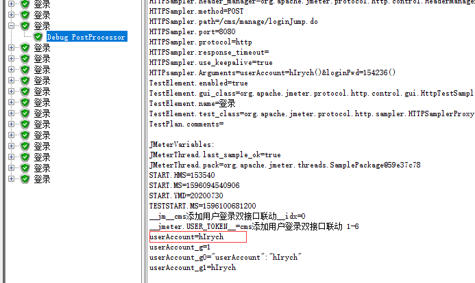 设置好后parameters传入userAccount=${userAccount} (引用正则表达式名称)