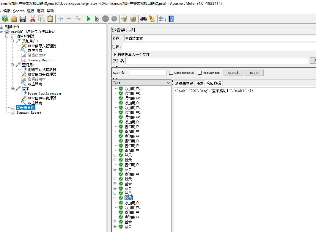 一.使用jmeter测试添加用户,查询用户,登录三个接口的性能