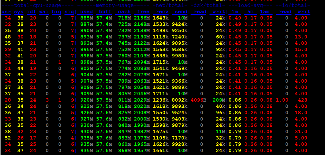 使用dstat -c -m -n -d -r -l 监控cpu 内存 网络 磁盘 io 系统负载情况