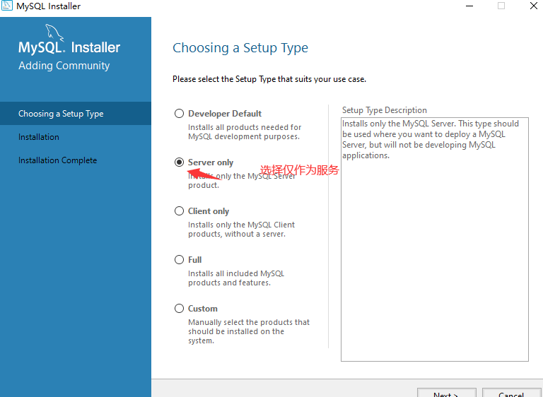2.选择仅作为服务