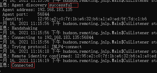 第七步:copy上面的java -jar 命令在dos窗口中运行,看到Agent discovery