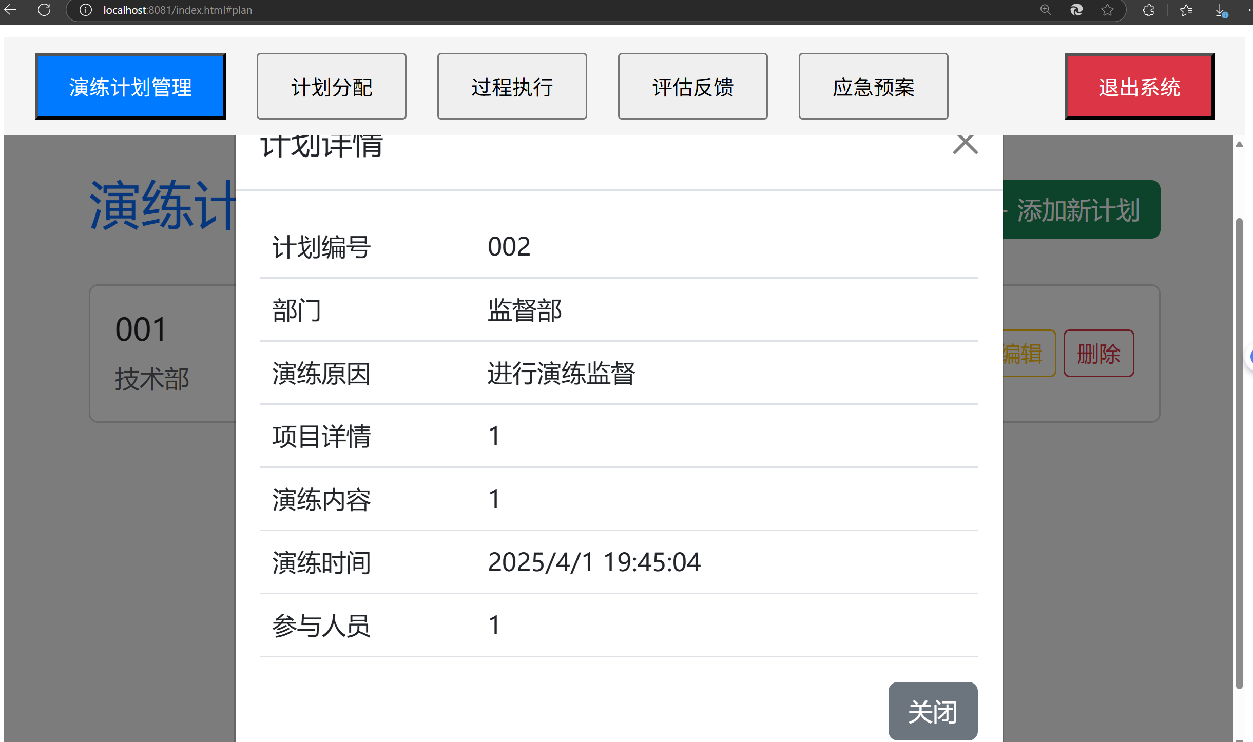 4.最新做好的功能 (1)完成演练计划管理模块的查询功能: (2)完成登录注册和演练分配计划分配的功能整合 登录注册