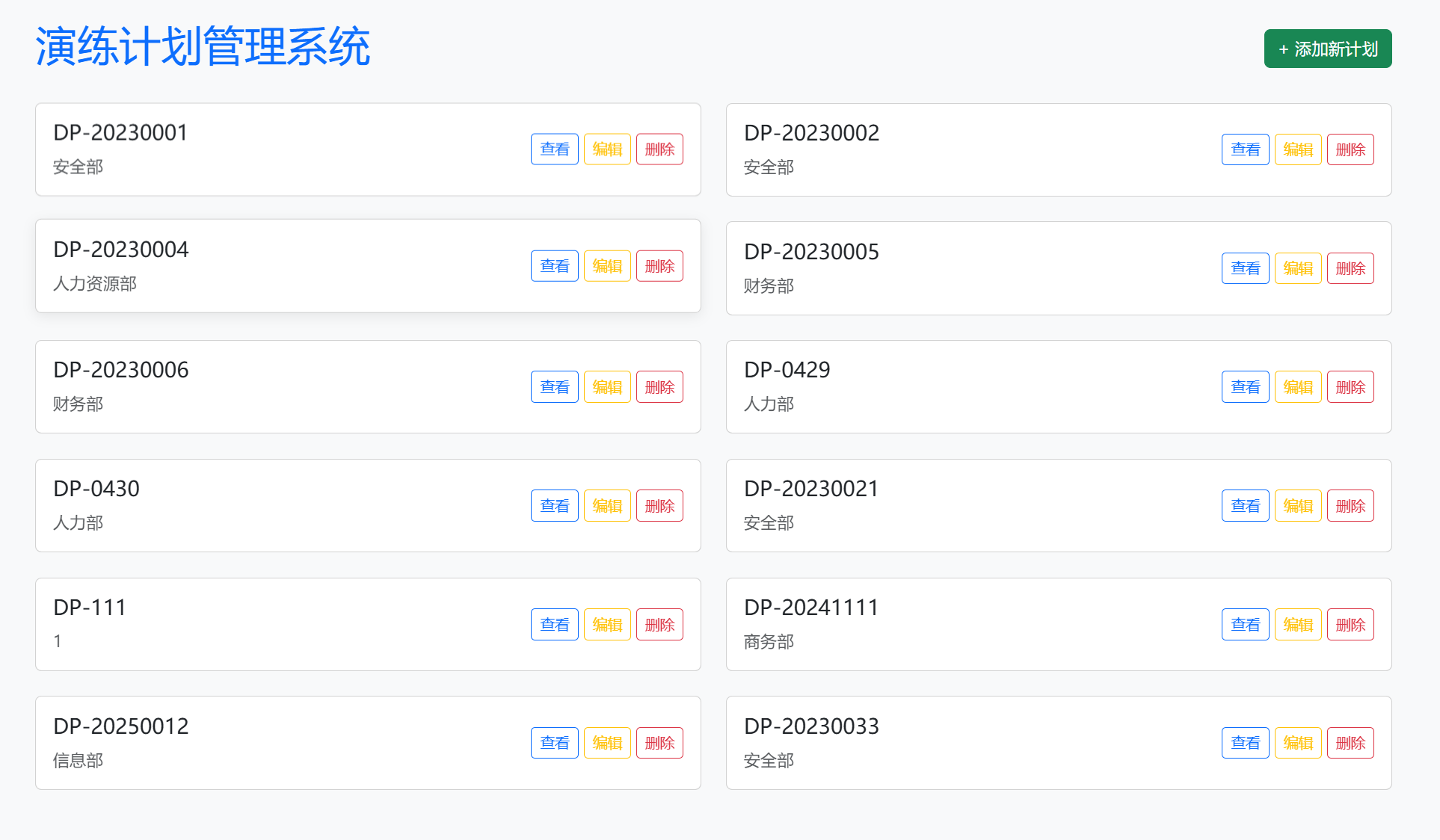 4.每日会议截图 5.最新做好的功能 (1)完成演练计划管理模块的计划表的删除操作 点击计划表的删除选项, 弹出提示让用户再次确认可进行删除,避免用户犯简单错误进行误删