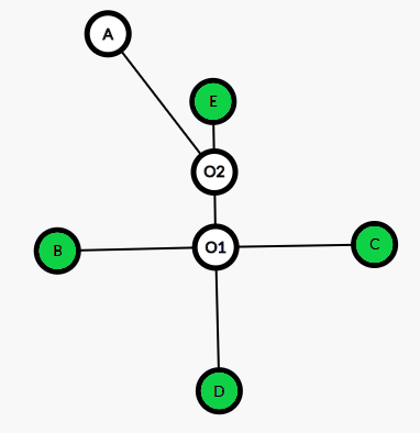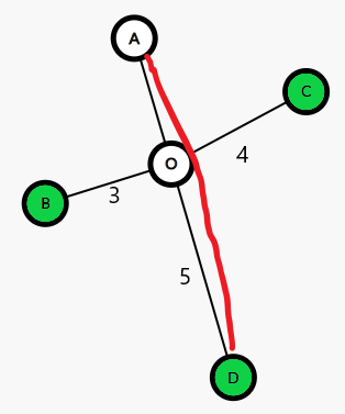 先假设 DO1 = BO1 = CO1 = EO1,A从O2穿插进来,很明显,AB = AC = AD > AE