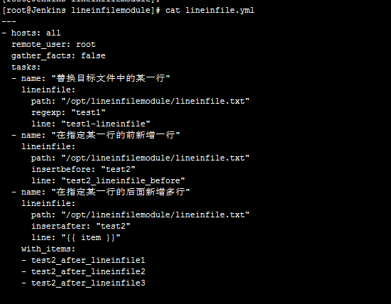 ansible-playbook lineinfile模块