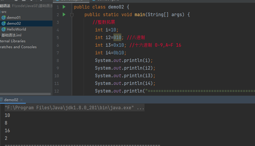 八进制:以0开头;十六进制:以0x开头