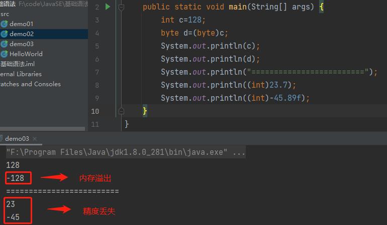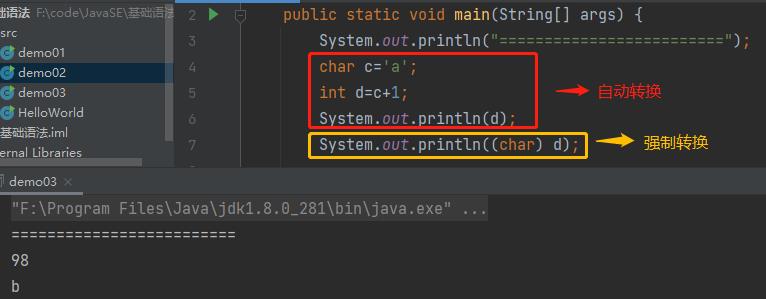由于Java是强类型语言,所有进行有些运算时,需要用到类型转换。