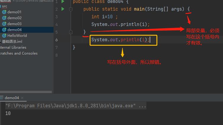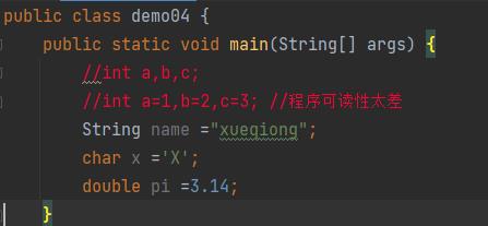 数据类型 变量名=值;可以使用逗号隔开来声明多个同类型变量。