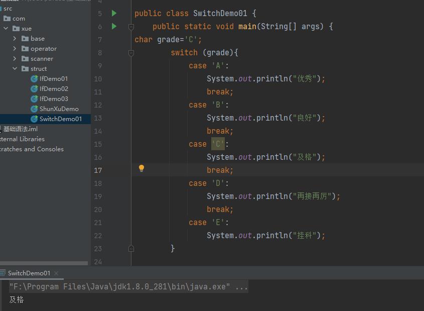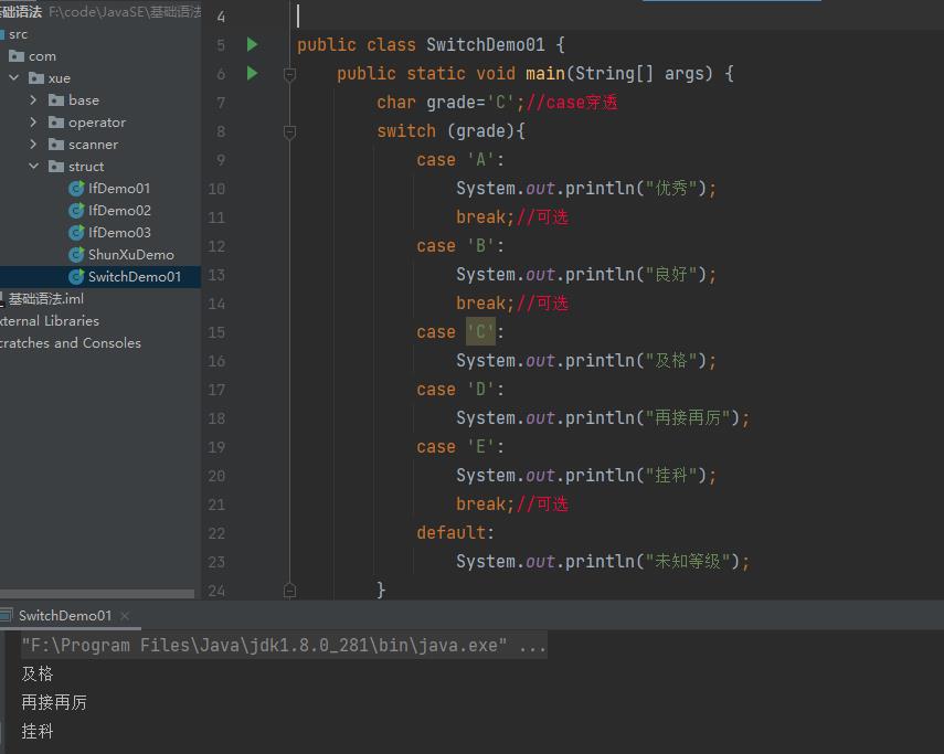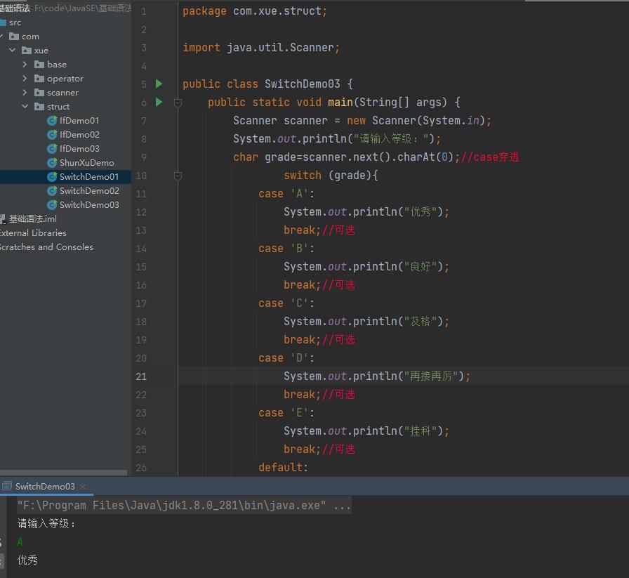 多选择结构还有一个实现方式就是switch case语句。