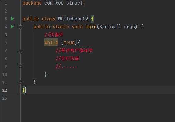 循环条件一直为true就会造成无限循环(死循环),我们正常的业务编辑中应该尽量避免死循环,会影响程序性能或者造成程序卡死崩溃。