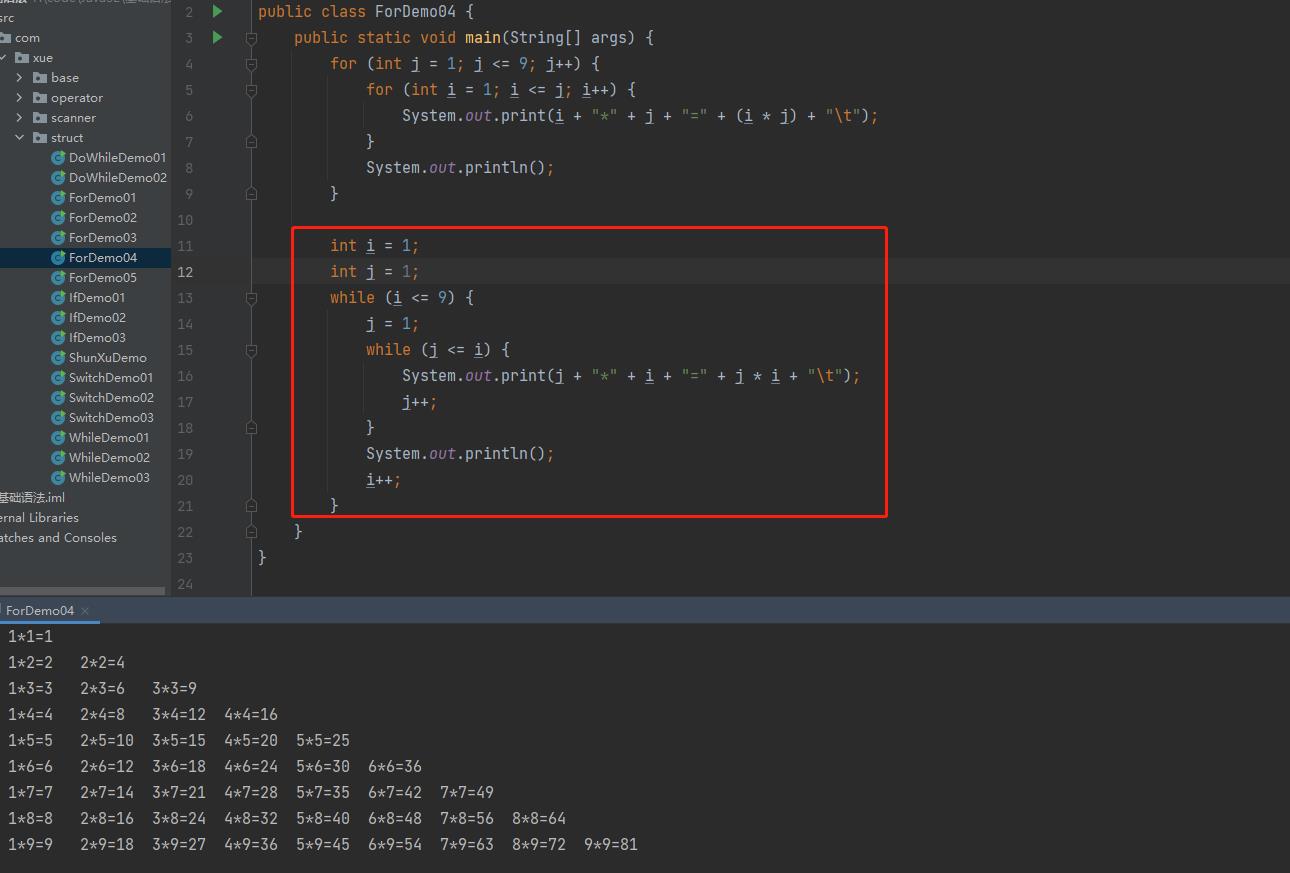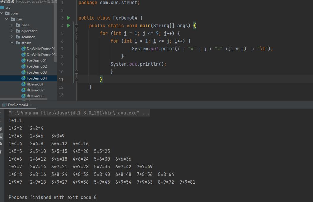 练习3 打印九九乘法表