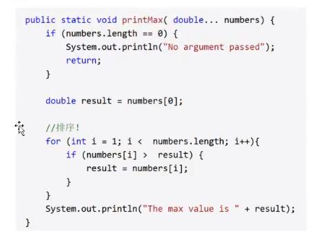 在一个方法中只能指定一个可变参数,它必须是方法的最后一个参数,任何普通的参数必须在它之前声明。