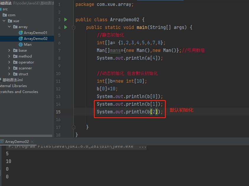 数组是引用类型,它的元素相当于类的实例变量,因此数组一经分配空间,其中的每个元素也被按照实例变量同样的方式被隐式初始化。