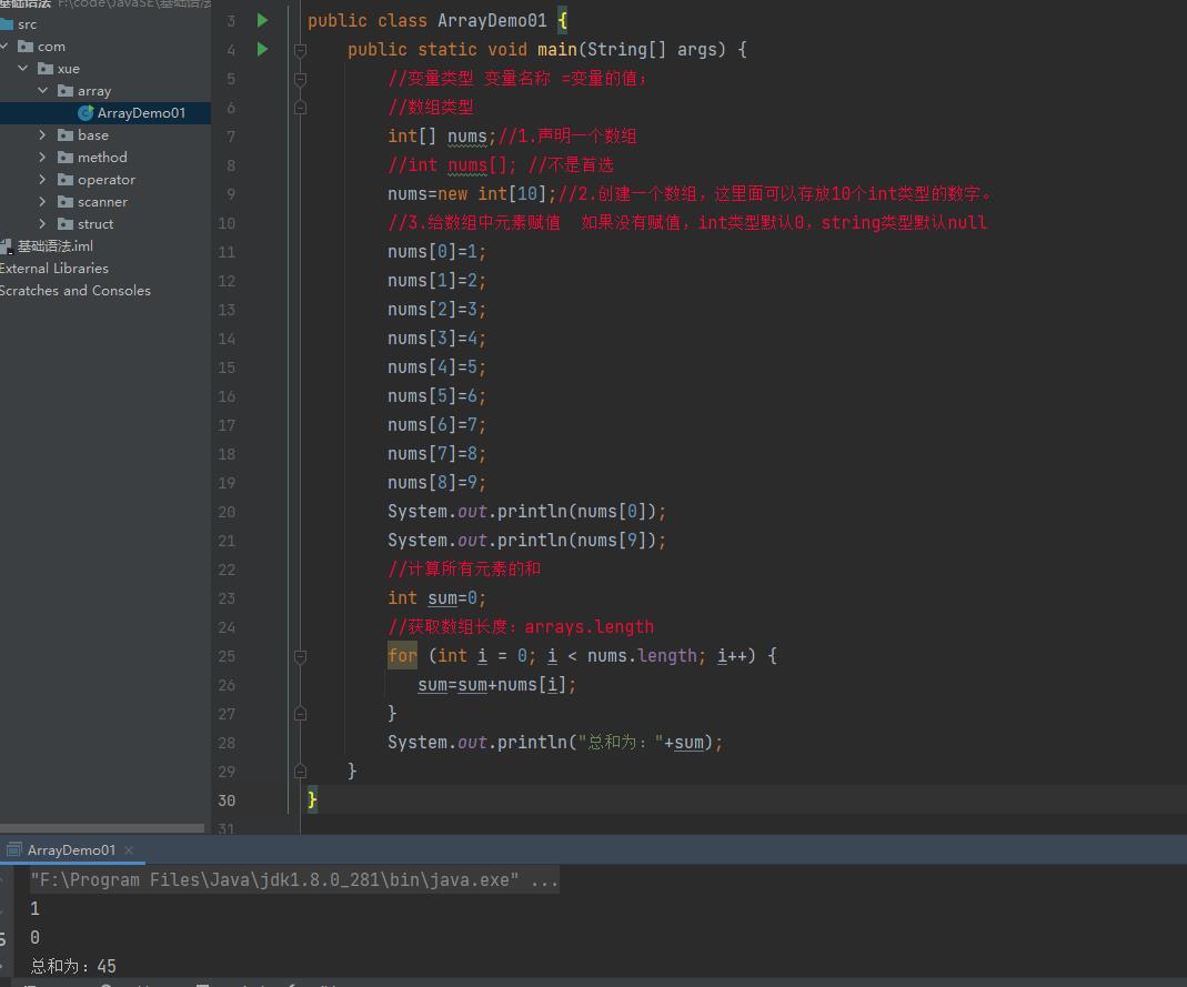 day15--数组定义、声明创建、内存分析、初始化、基本特点、边界及小结