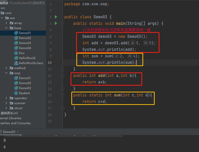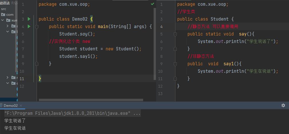 非静态方法 实例化类 //对象类型 对象名=对象值