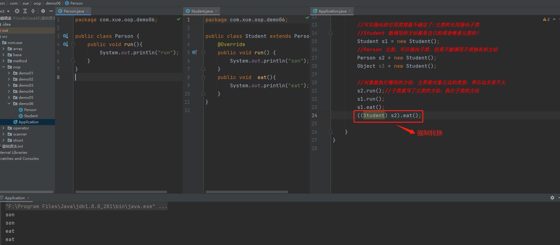 一个对象的实际类型是确定的,但可以指向对象的引用的类型有很多。(父类,有关系的类)