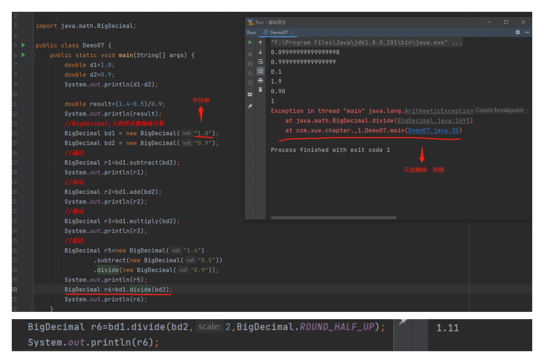 创建方式:BigDecimal bd=new BigDecimal("1.0");