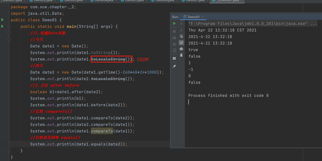 Date表示特定的瞬间,精确到毫秒,Date类中的大部分方法都已经被Calendar类的方法所取代。