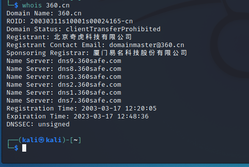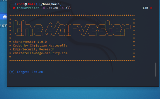 通过工具有Theharvester 语法:theharverster -d 360.cn -b all