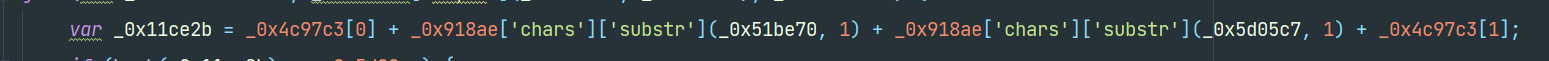 var _0x11ce2b = _0x4c97c3[0] + _0x918ae['chars']['substr'](_0x51be70, 1) + _0x918ae['chars']['substr'](_0x5d05c7, 1) + _0x4c97c3[1];