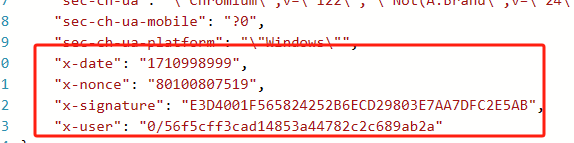 找的数据请求链接,复制curl到工具中,反复测试,得出变量是headers中的值